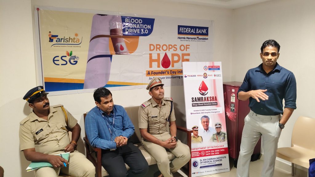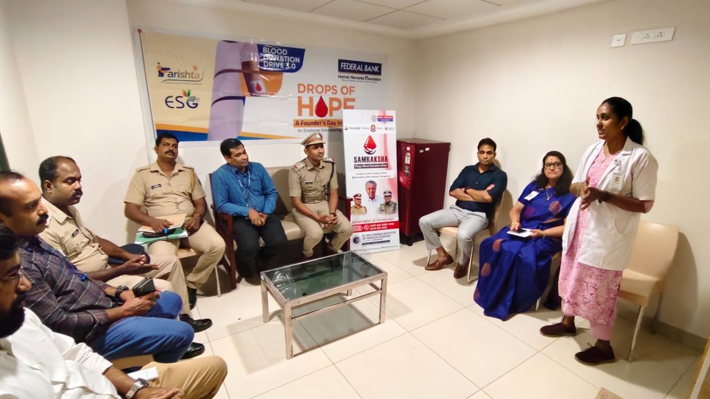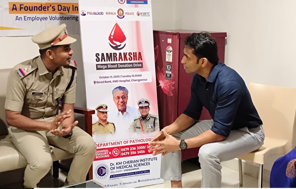 Department of Pathology at Dr. KM Cherian Institute of Medical Sciences, Chengannur, in association with KSBTC (Kerala State Blood Transfusion Council) and POL-Blood (Kerala Police), organized the Blood Donation Drive – SAMRAKSHA.