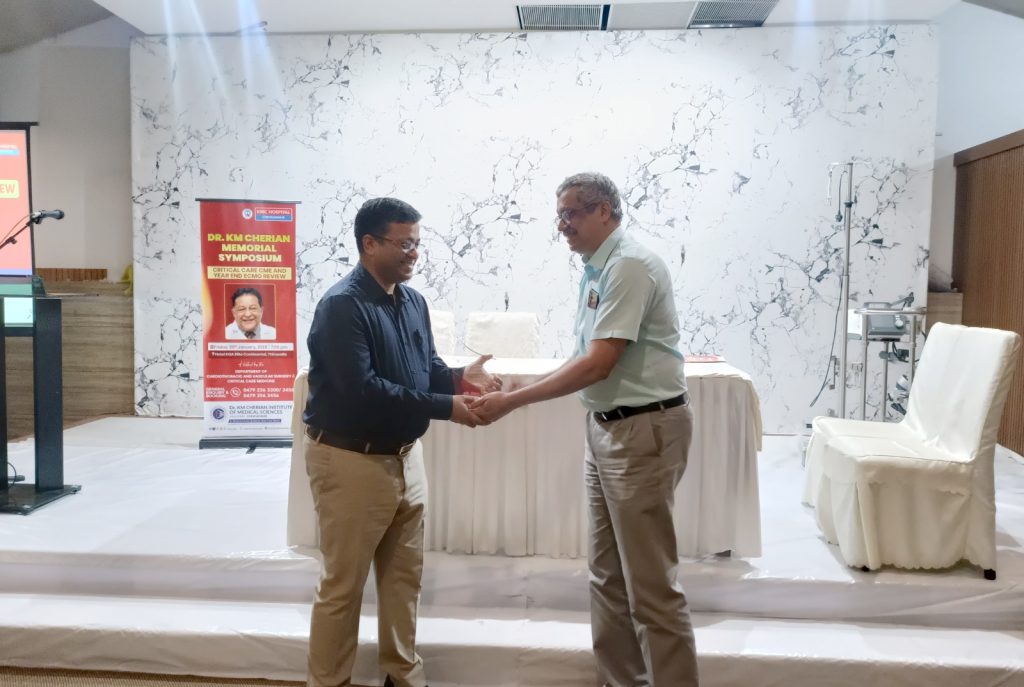 The sessions were chaired by Dr. Anand Srinivasan, Sr. Consultant Cardiologist at KMC Hospital, Chengannur; Dr. Thomas P. George, Professor and Head of the Department of Anaesthesiology at Pushpagiri Medical College Hospital, Thiruvalla; Dr. Mathew Pulicken, Professor and Head of Critical Care at Pushpagiri Medical College Hospital, Thiruvalla; and Dr. Philip Mathew, Professor and Head of Critical Care at Believers Church Medical College Hospital, Thiruvalla; Dr. Sajith Sulaiman, Senior Consultant and Chairman of the ESOI Kerala Chapter; Dr. Vinitha V. Nair, Assistant Professor and Consultant Cardiothoracic Surgeon at Government Medical College, Kottayam; and Mr. Daniel Mathew, In-charge Cardiac Perfusionist at KMC Hospital, Chengannur.