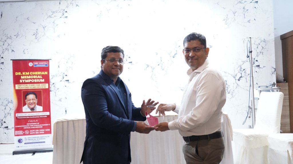 The scientific sessions featured expert talks on ‘VA ECMO in acute cardiogenic shock’ by Dr. Dipanjan Chatterjee, President of ESOI and Director of ECMO Services at Manipal Hospitals, Kolkata; ‘VV ECMO – current status’ by Dr. Jobin Abraham, Senior Consultant in Anaesthesiology and Critical Care at Aster Medcity Multispeciality Hospital, Kochi and the ‘Year-End ECMO case review’ by Dr. Geevarghese K. Mathew, Director of the ECMO Program and Consultant Cardiothoracic and Vascular Surgeon at KMC Hospital, Chengannur.