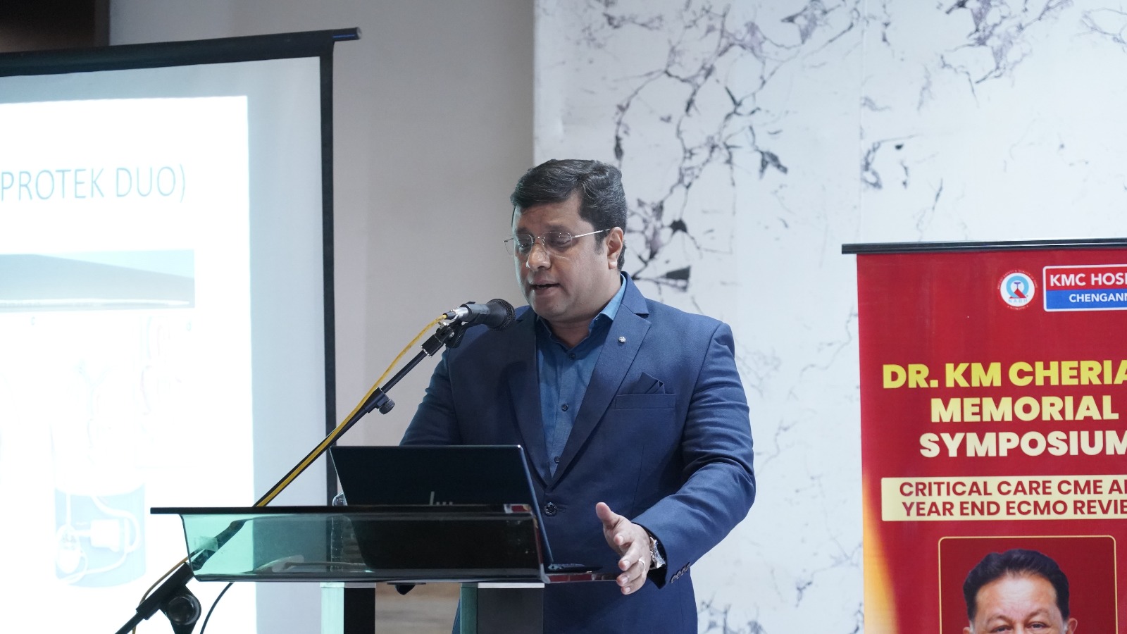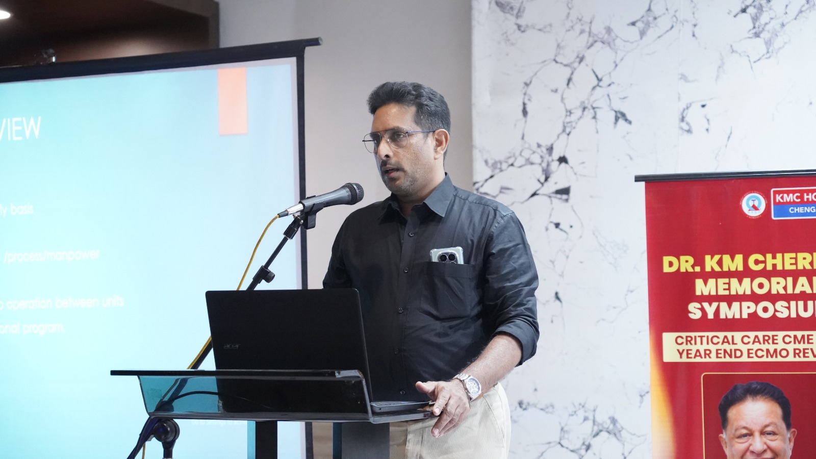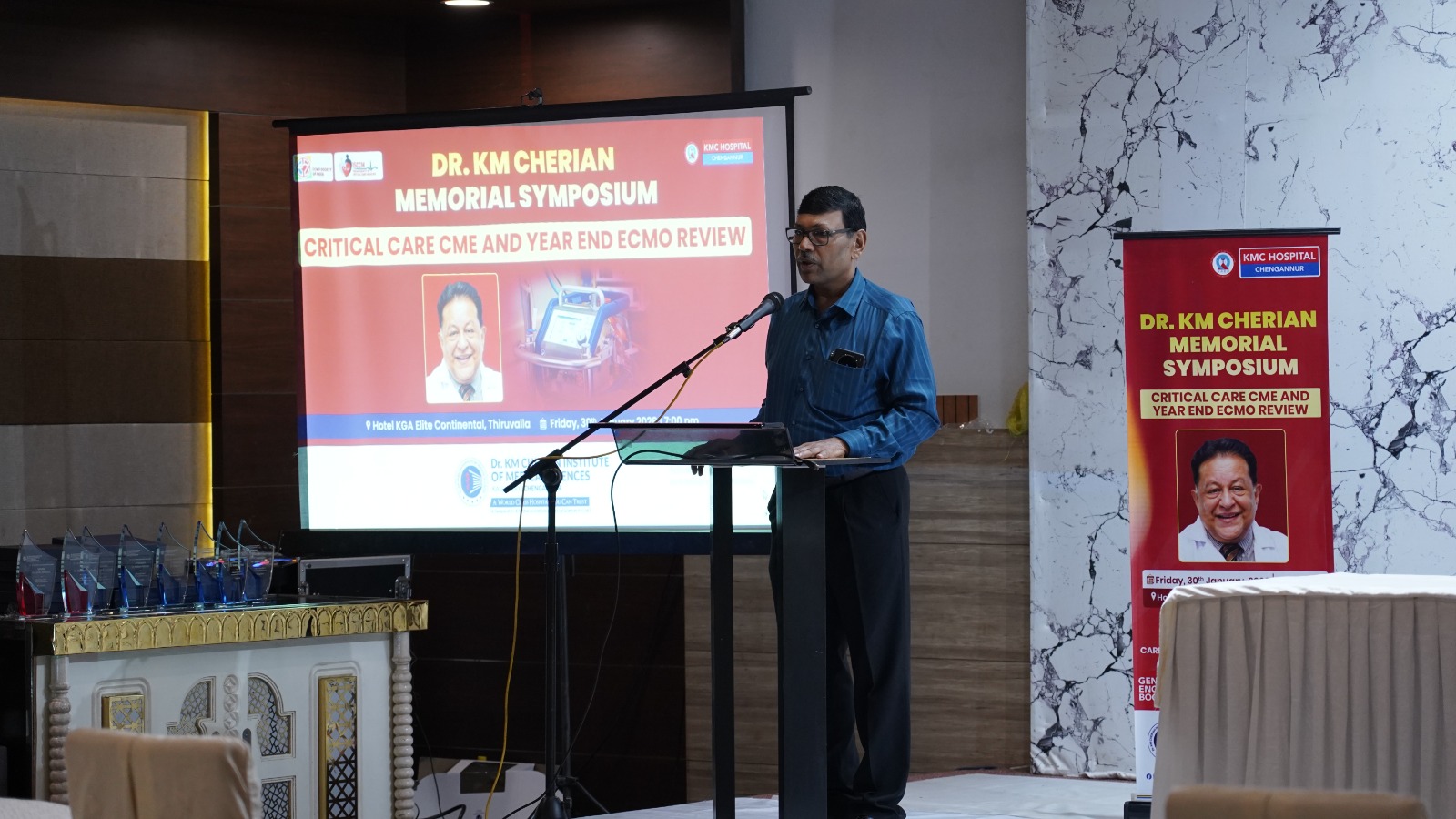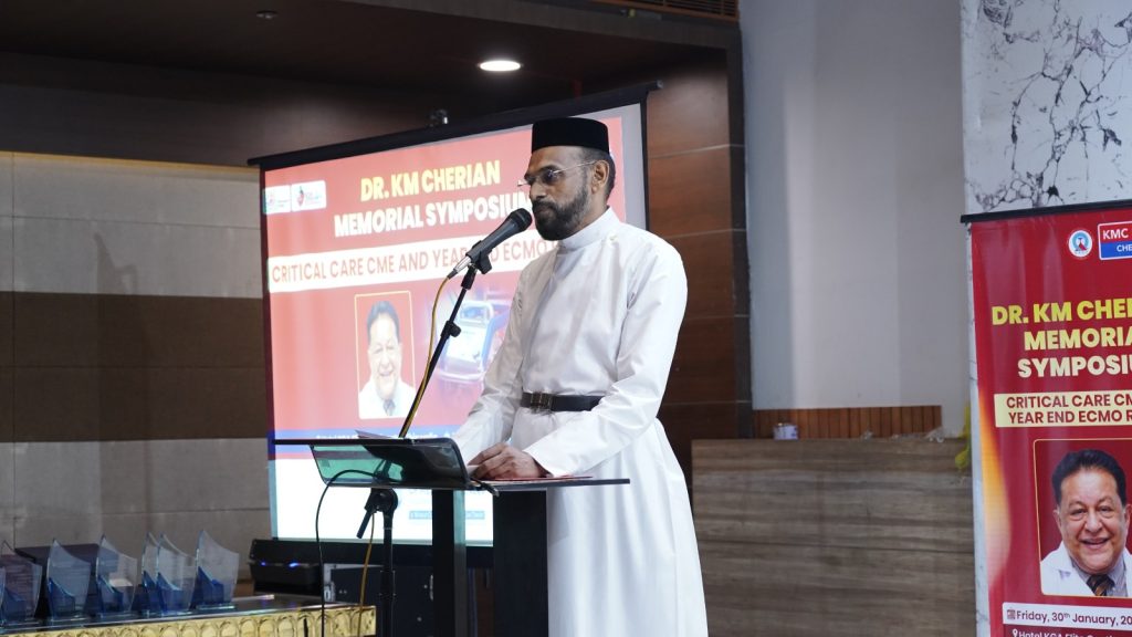 Rev. Fr. Dr. Alexander Koodarathil, Managing Director of KMC Hospital, inaugurated the CME and delivered the Dr. K. M. Cherian Memorial Oration. The Critical Care CME and Year-End ECMO Review was a unique academic initiative that included a commemorative lecture honouring the legacy and contributions of Dr. K. M. Cherian.