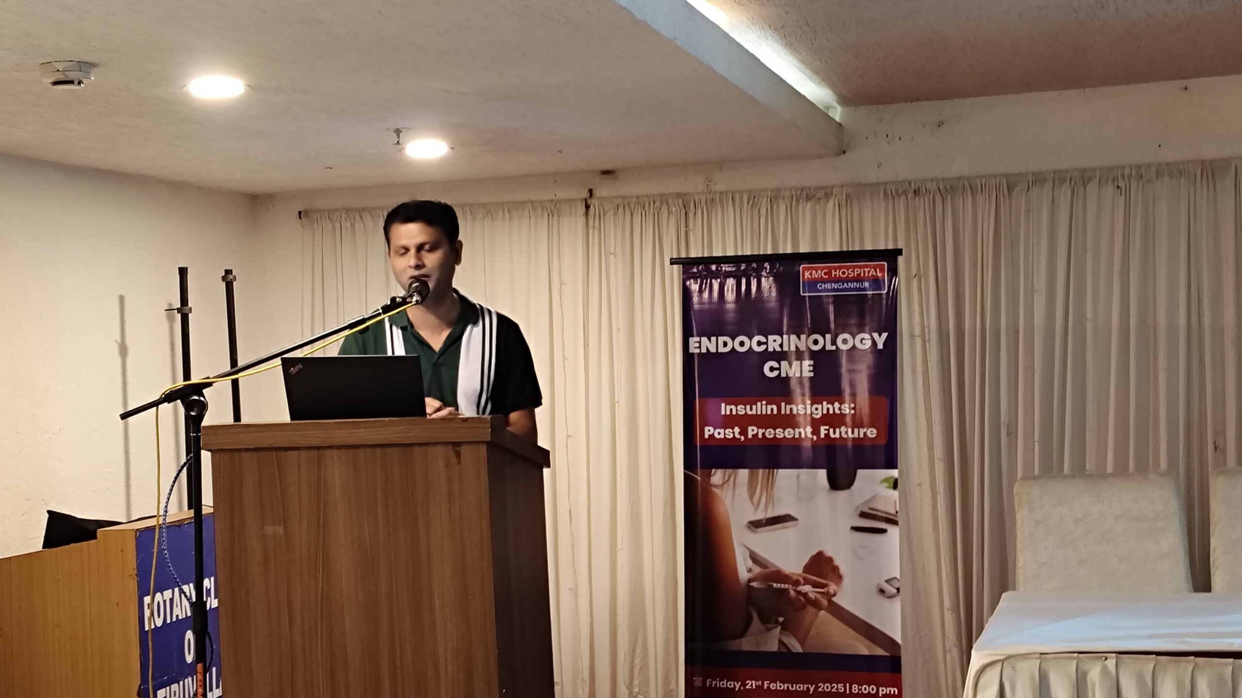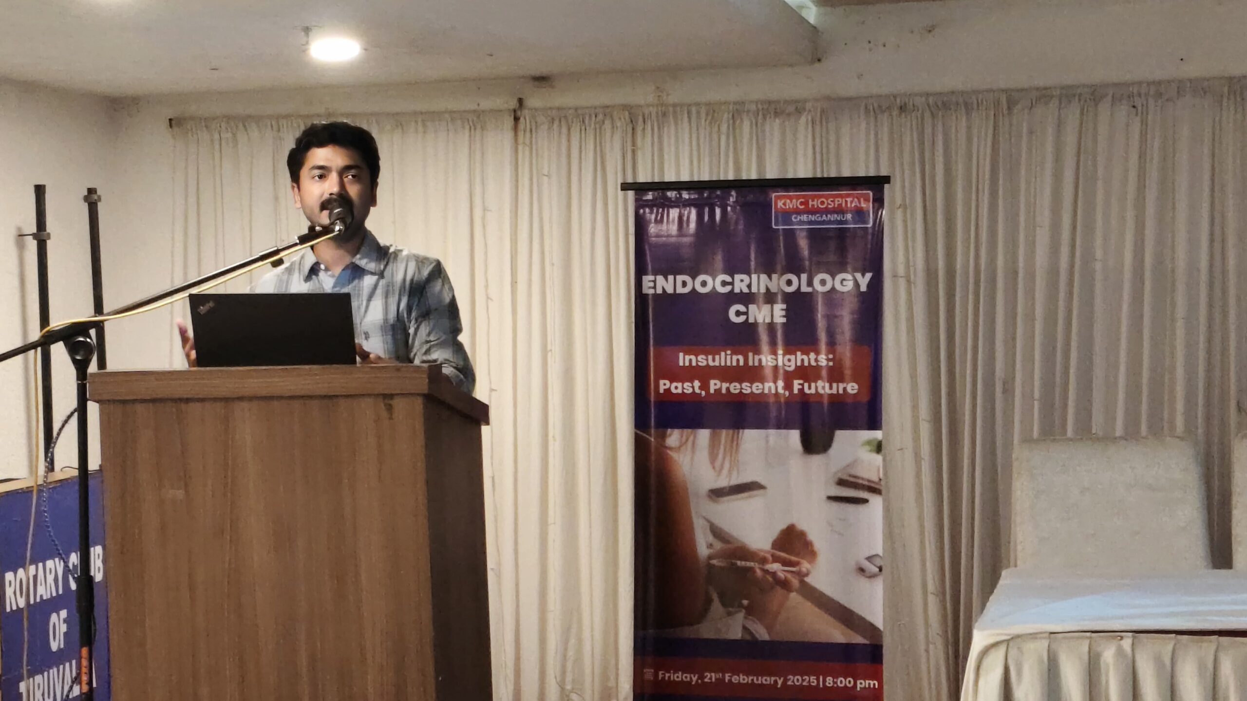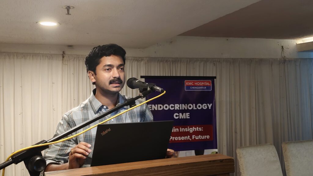 Dr. KM Cherian Institute of Medical Sciences, Chengannur organized the CME on ‘Insulin Insights: Past, Present, Future’ by the Department of Endocrinology. The scientific sessions were led by Dr. Rajeev Philip (Consultant Endocrinologist, KMC Hospital) and Dr. Amal Dev D. (Consultant Endocrinologist, KMC Hospital).