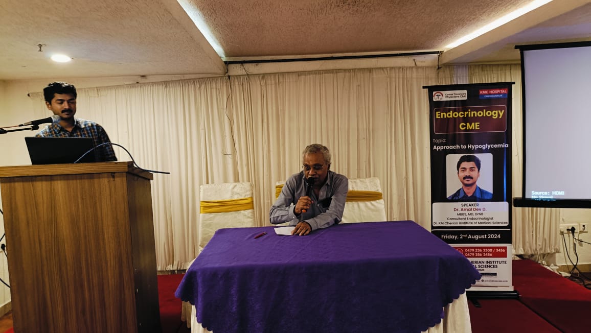 Dr. KM Cherian Institute of Medical Sciences organized the Endocrinology Seminar – ‘Approach to Hypoglycemia’ in association with Central Travancore Physicians Club on 2nd Aug 2024. The scientific Session was led by Dr. Amal Dev. D (Consultant Endocrinologist, KMC Hospital, Chengannur) and chaired by Dr. G Vijayakumar (Diabetologist, Medical Trust Hospital).