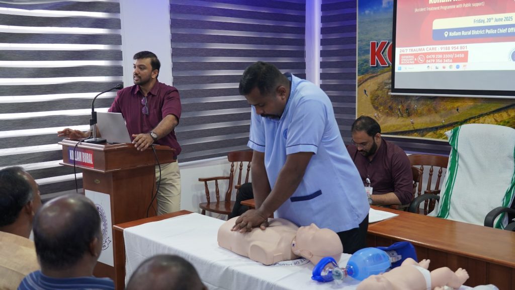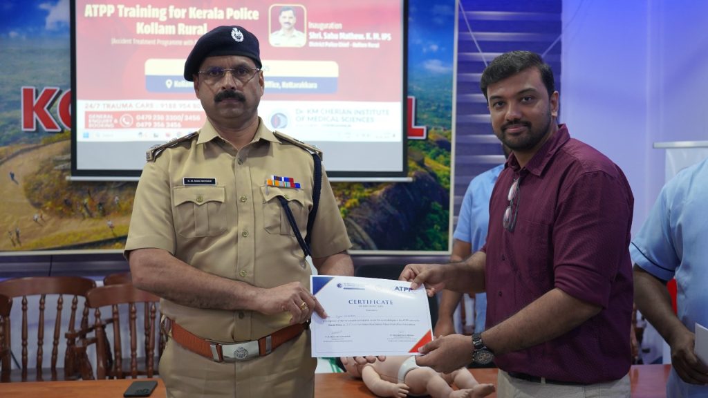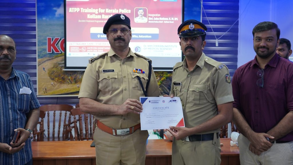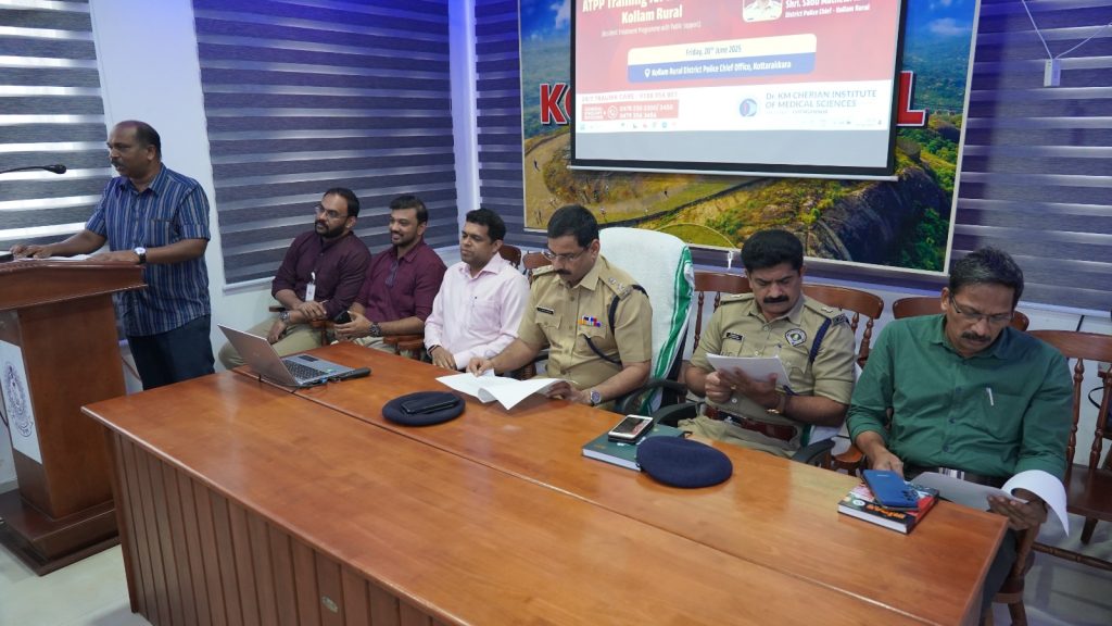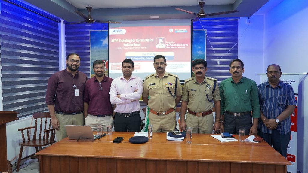 Police officers from Thenmala, Anchal, Sasthamkotta, Pooyapally, Puthoor, Chadayamangalam, Kulathupuzha, Chithara, Sooranad, Punalur and Yeroor police stations has attended the ATPP training session conducted by Dr. R. Rajeev (Consultant Neurosurgeon), Dr. Arun Raj. S. L (Consultant Emergency Medicine) and Dr. Ruben John (Consultant Psychiatrist).