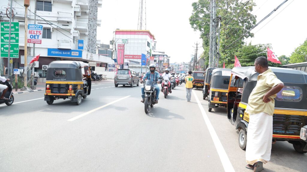 The 5 km Bike Rally from Chengannur Town to Dr. KM Cherian Institute of Medical Sciences was flag offed by Chengannur DySP, Shri. Binukumar, and had the presence of over 100 bikers carrying the messages of road safety.