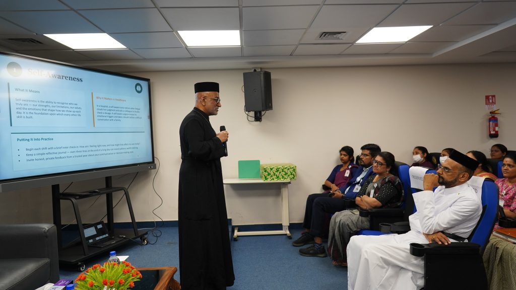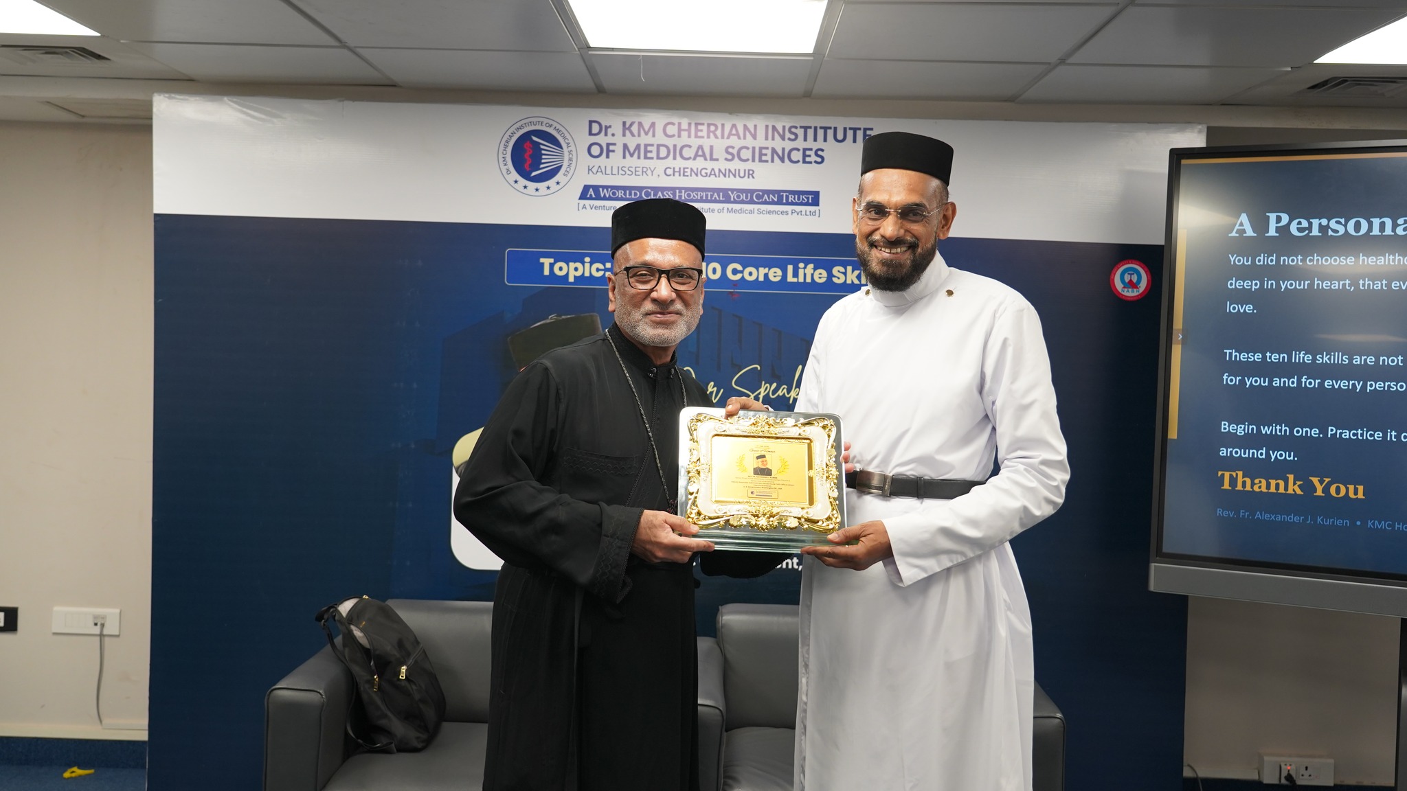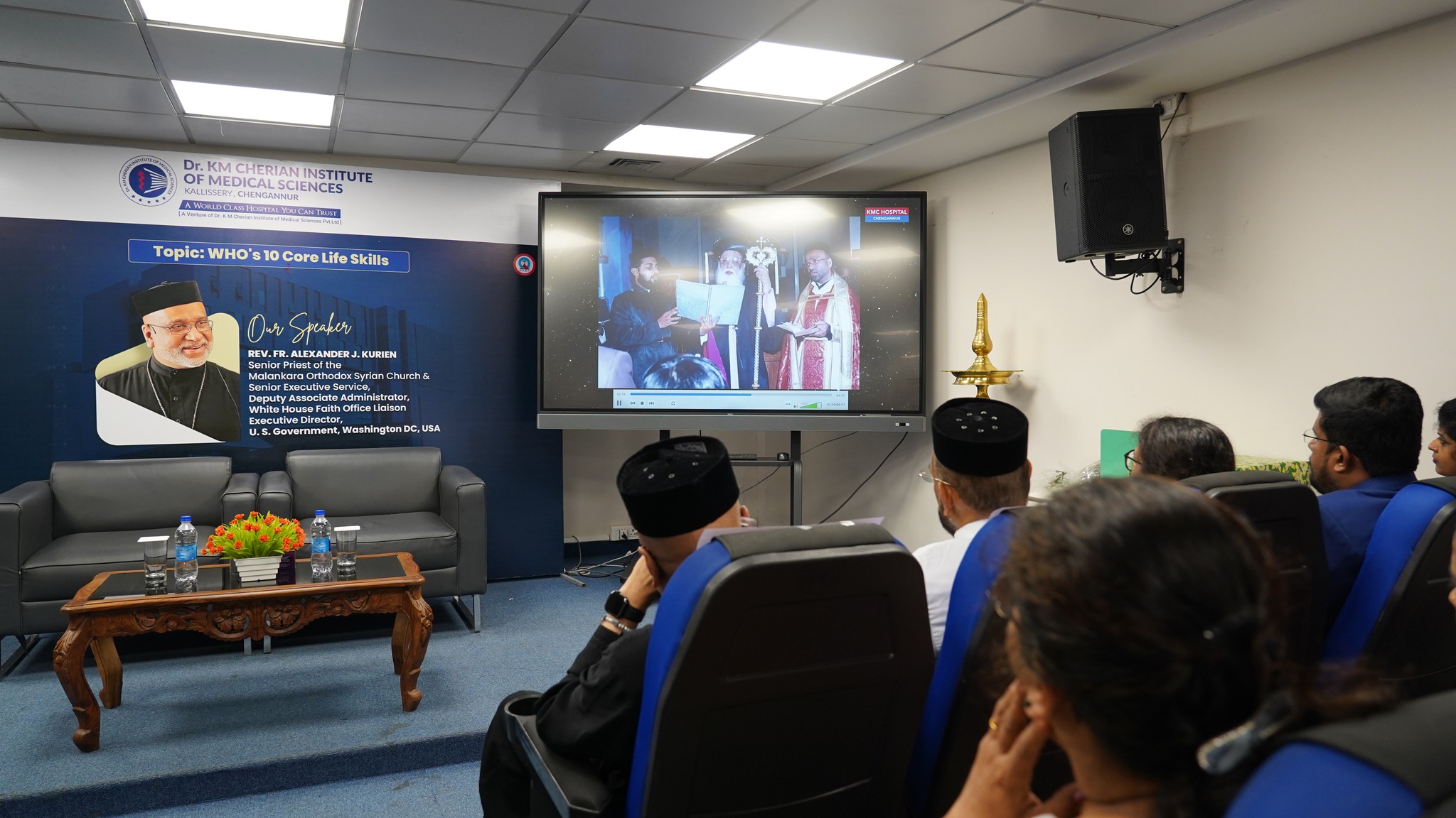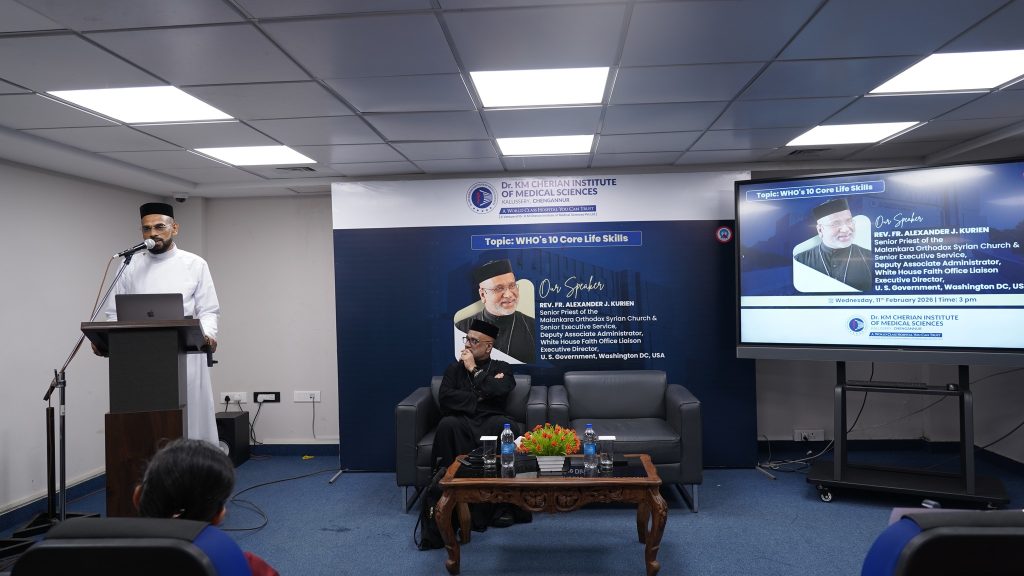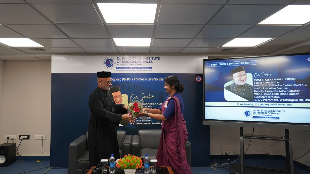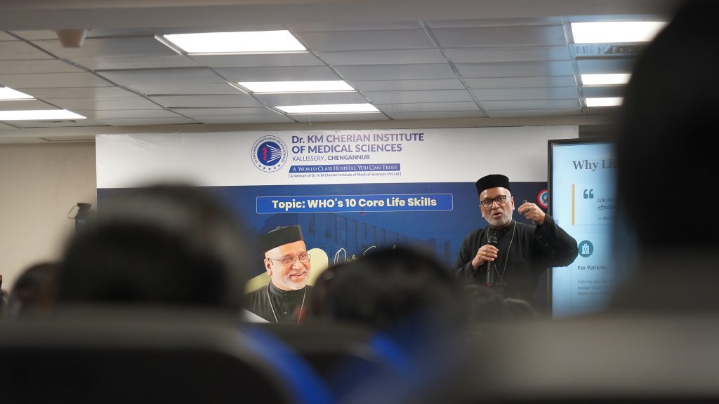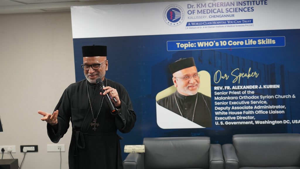 Glimpses from the management session at Dr. KM Cherian Institute of Medical Sciences by Rev. Fr. Alexander J. Kurien ((Deputy Associate Administrator, White House Faith Office Liaison & Executive Director, U.S. Government, Washington D.C.) on integrating “WHO’s 10 Core Life Skills” into leadership practice and institutional culture.