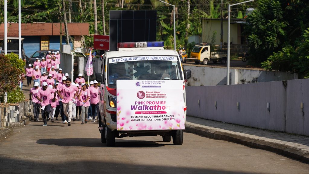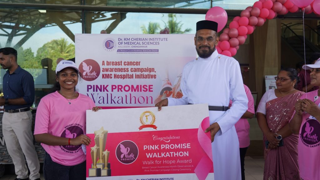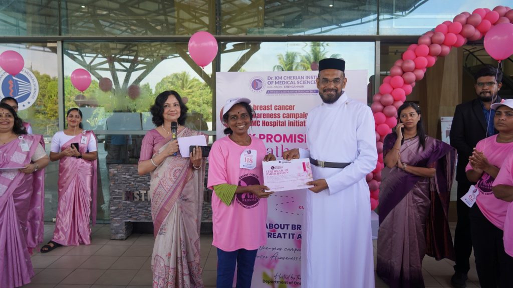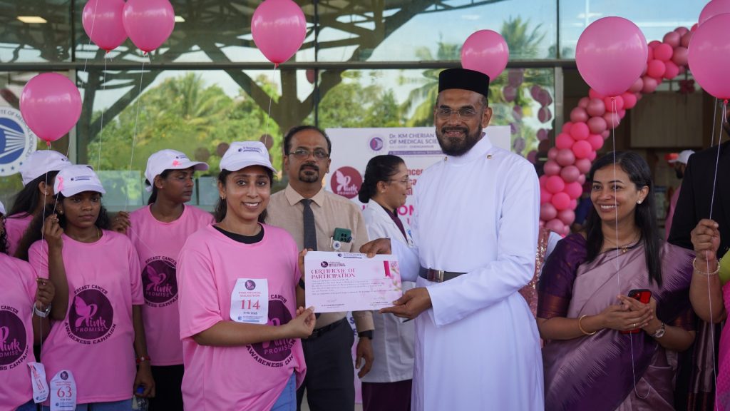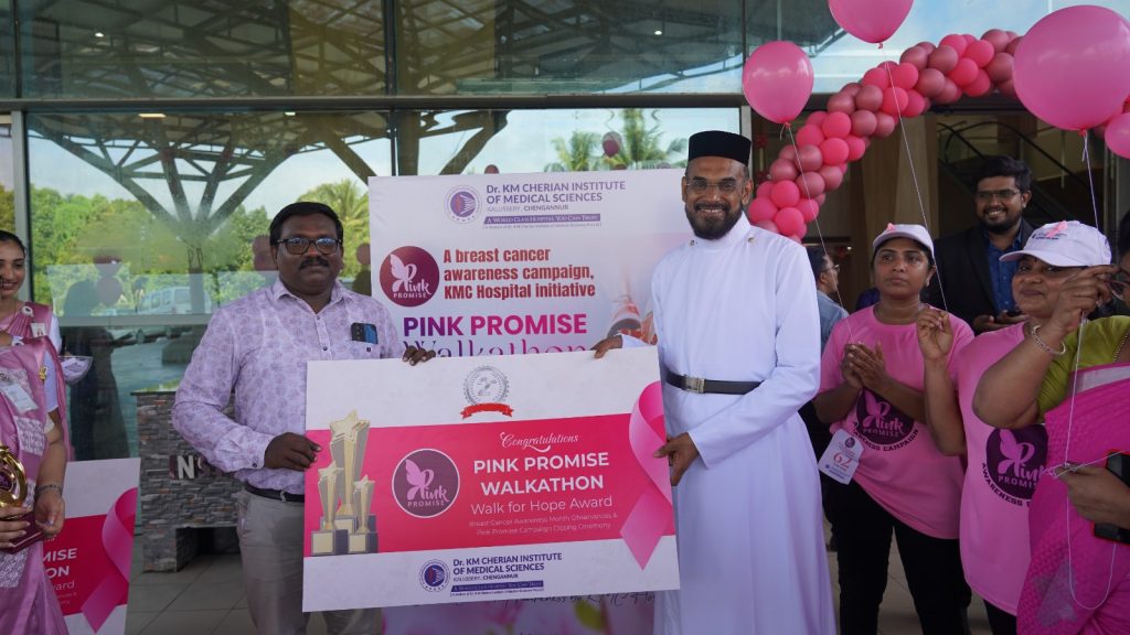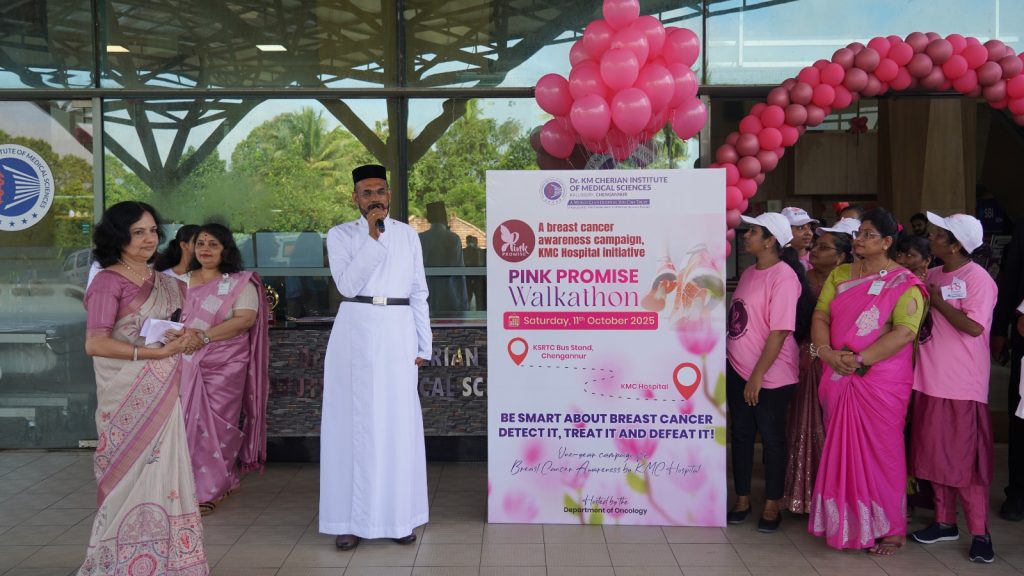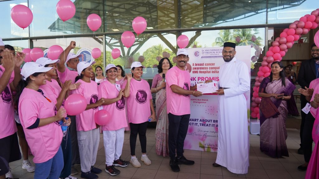 As part of Breast Cancer Awareness Month, Department of Oncology at Dr. KM Cherian Institute of Medical Sciences, Chengannur, organized the “Pink Promise Walkathon” to raise awareness about breast cancer.