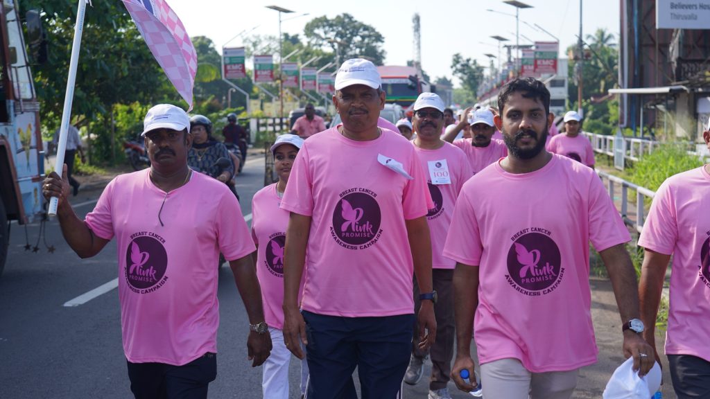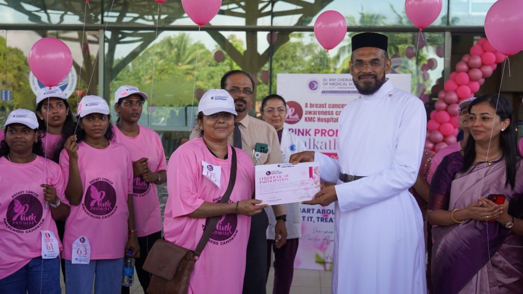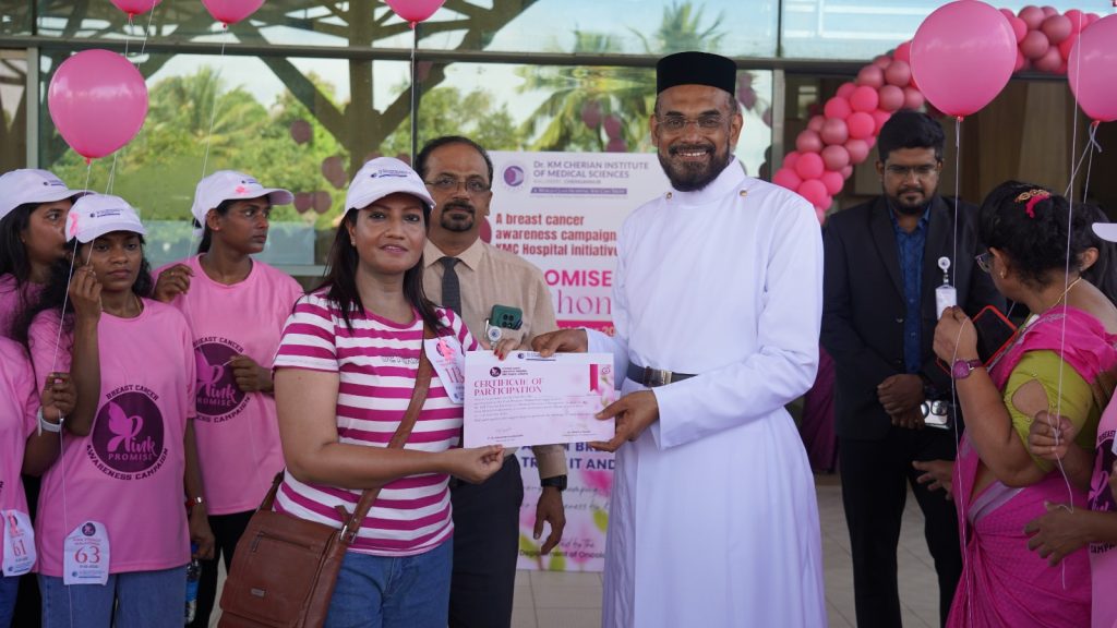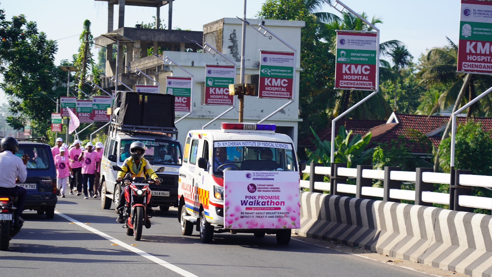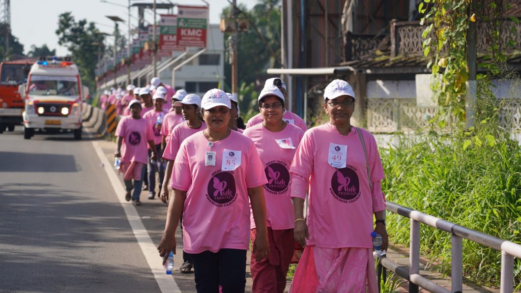 As part of Breast Cancer Awareness Month, Department of Oncology at Dr. KM Cherian Institute of Medical Sciences, Chengannur, organized the “Pink Promise Walkathon” to raise awareness about breast cancer.