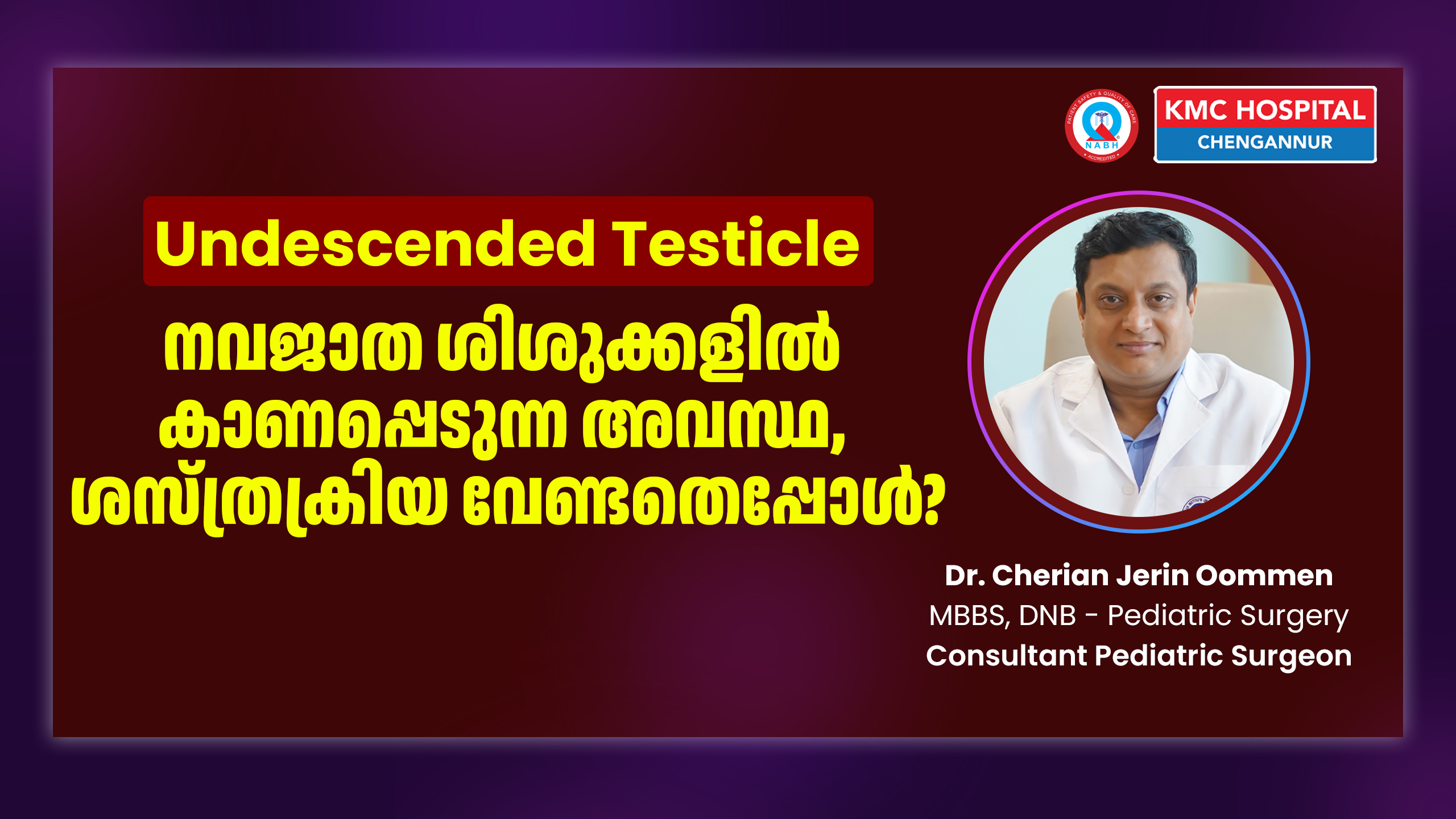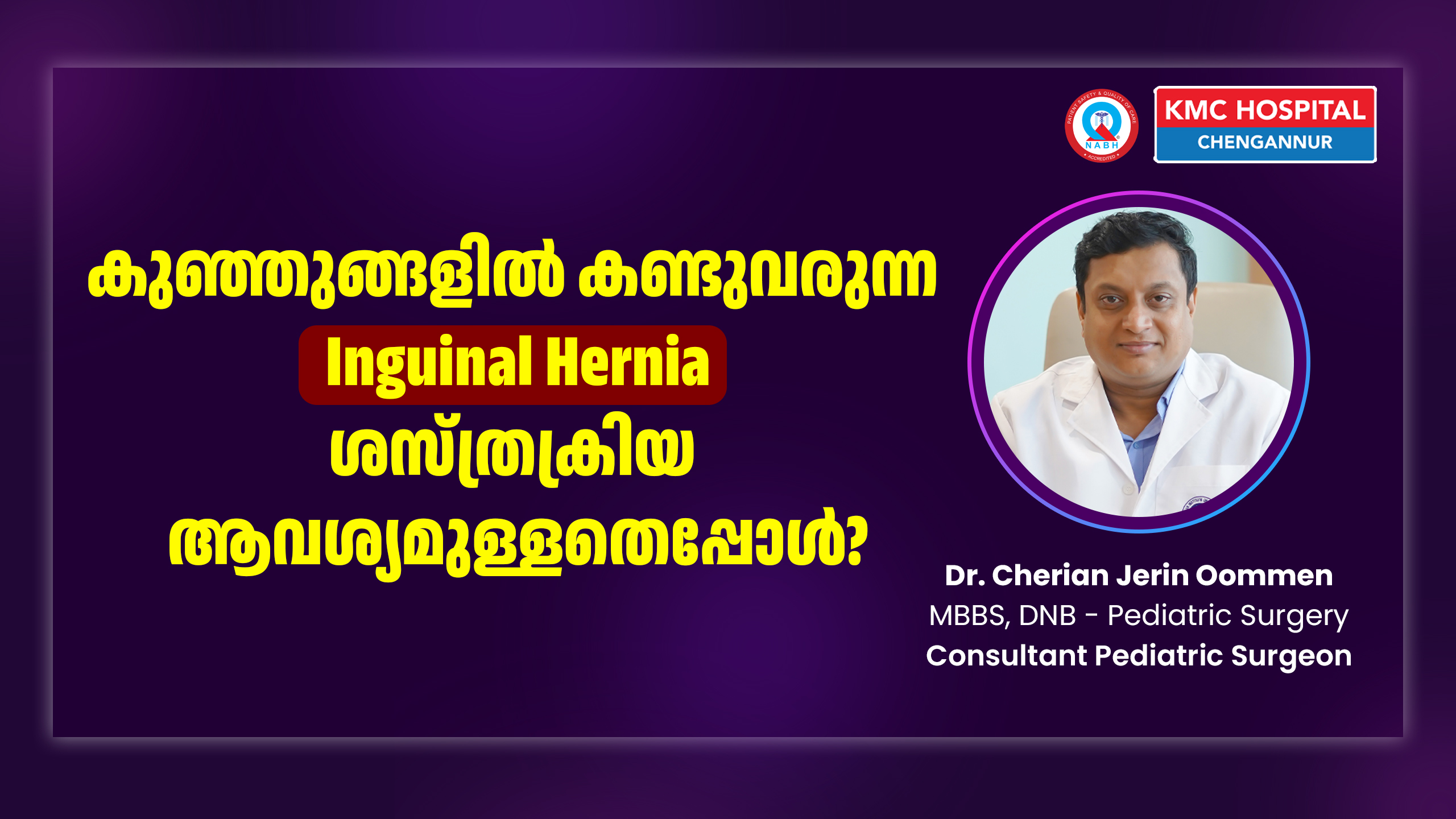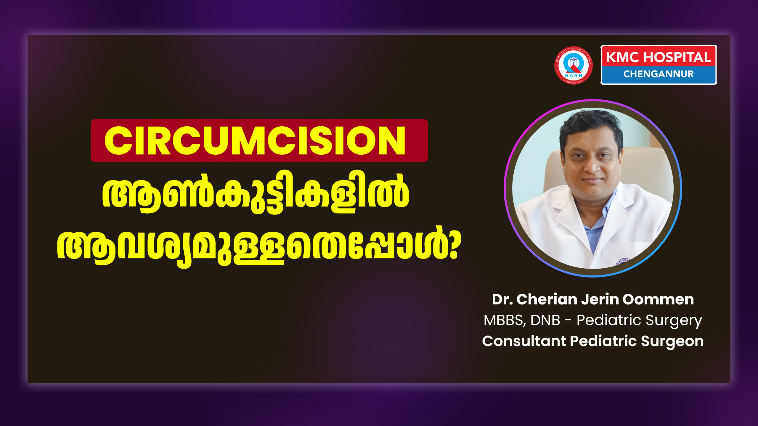 Dr. KM Cherian Institute of Medical Sciences (KMC Hospital, Chengannur) is a leading super-speciality hospital in Central Travancore offering advanced paediatric surgical care. Our central location makes us easily accessible to patients from Pathanamthitta, Kottayam, Idukki, Alappuzha, Kollam, Thiruvalla, Adoor, Aranmula, Kozhencherry, Kumbanad, Konni, Pandalam, Sabarimala, Parumala, and Mallappally.
