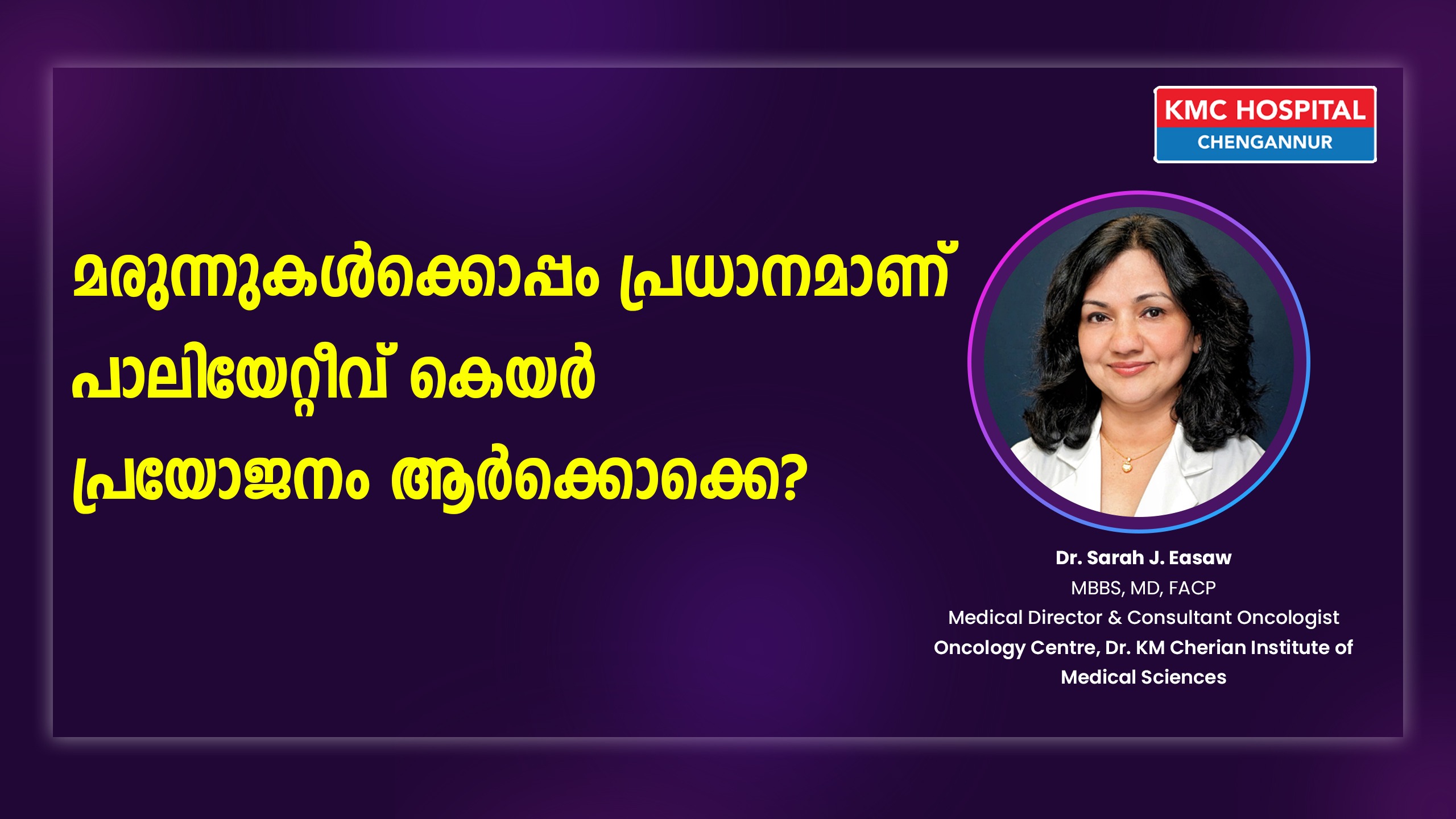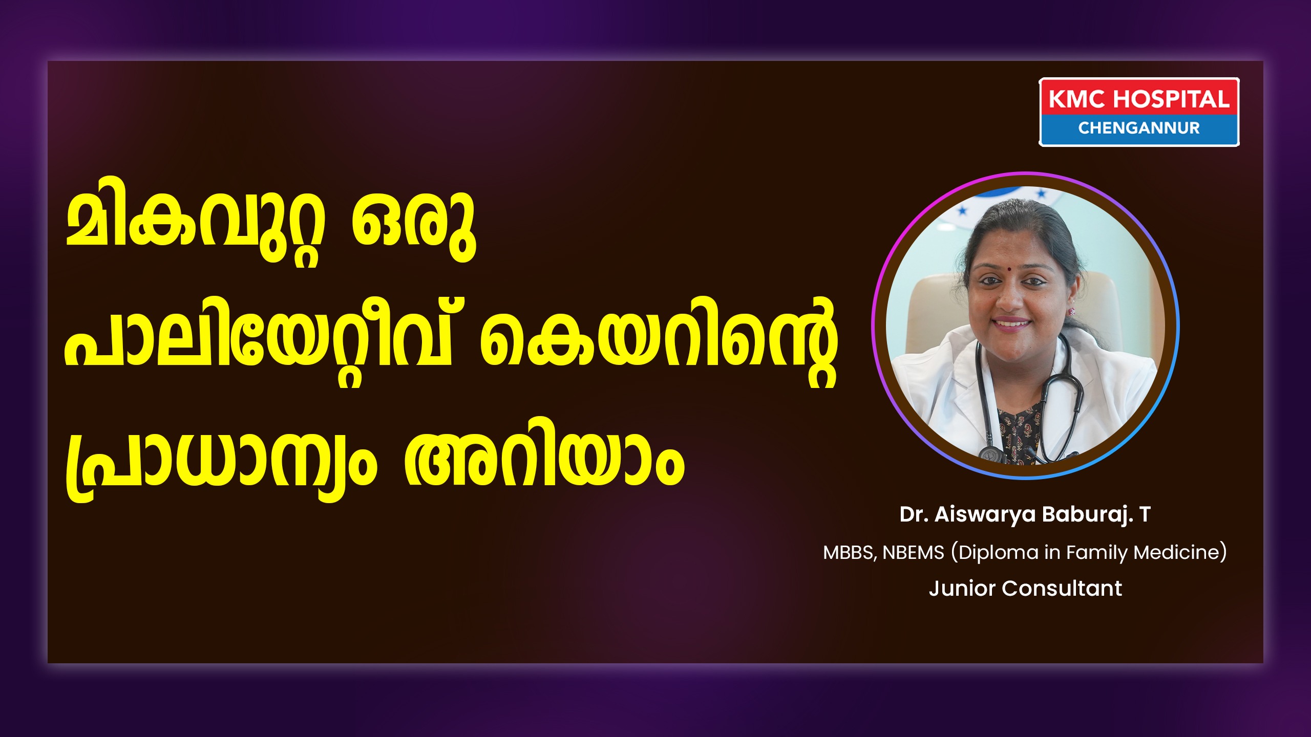 The Department of Palliative Care at Dr. KM Cherian Institute of Medical Sciences (KMC Hospital, Chengannur) is the best Palliative Care Hospital in Kerala. We specialise in providing compassionate care and excellent treatment to patients suffering from severe, life-threatening, and life-limiting diseases and medical conditions.