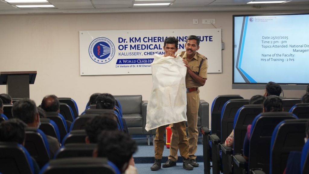 Department of Fire & Safety at Dr. KM Cherian Institute of Medical Sciences, in association with the Fire & Rescue Station, Chengannur and District Disaster Management Authority, Alappuzha, organized the workshop on ‘Skills to Effectively Manage Fire and Disasters’.