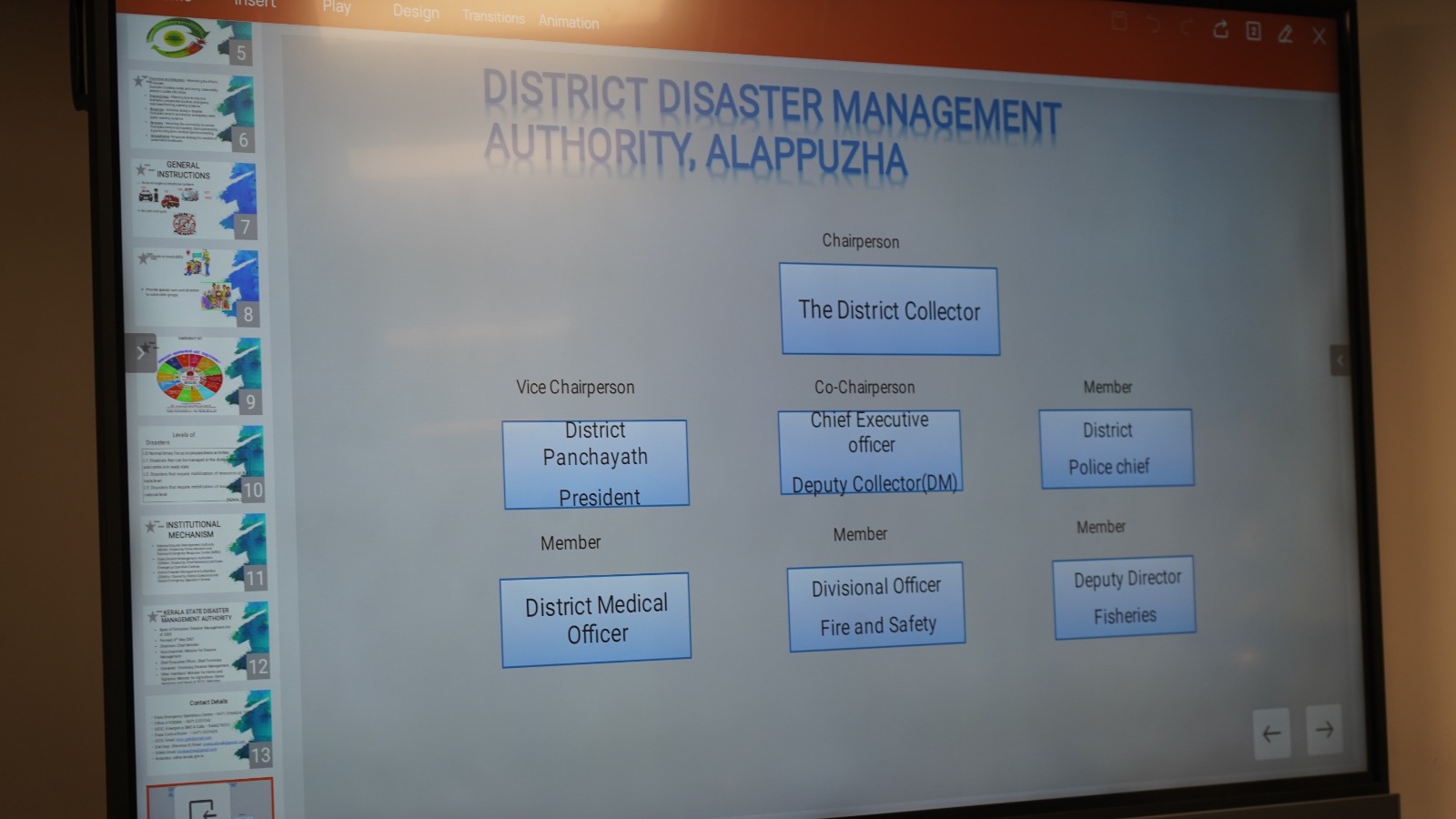 The training session on ‘Fire Safety, Firefighting & Fire Management’ was led by Shri. Prasanth S. P. (Grade Senior Fire & Rescue Officer, Chengannur), Shri. Subeesh S. (Fire & Rescue Officer, Chengannur) and Shri. Shahid Ali M. (Fire & Safety Officer, KMC Hospital). The session on Disaster Management was conducted by Smt. Chinthu C. (Hazard Analyst, District Disaster Management Authority, Alappuzha).